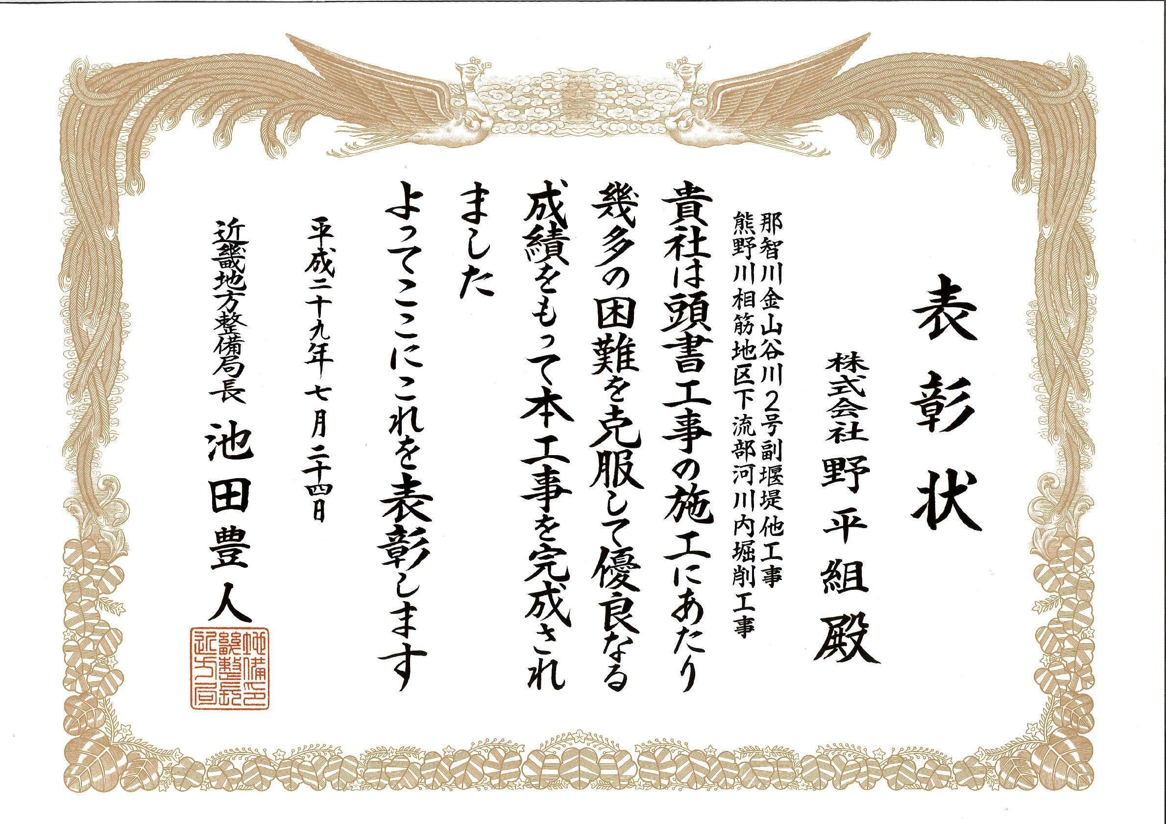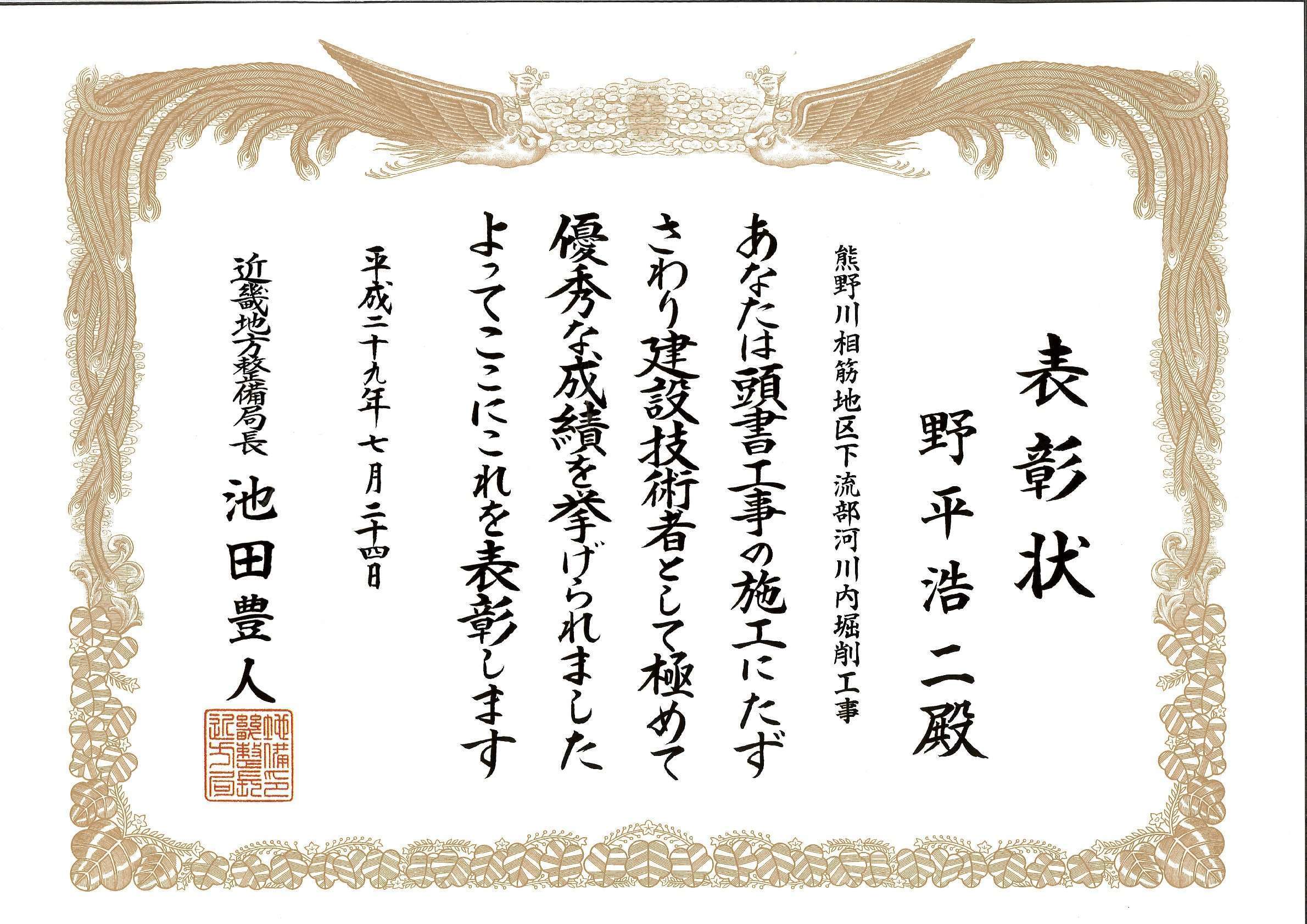 その他 表彰実績 熊野川相筋地区下流部河川内掘削工事 工事名:熊野川相筋地区下流部河川内掘削工事発注者:国土交通省 近畿地方整備局 紀南河川国道事務所竣工:平成28年度表彰実績:平成29年度 優良工事局長表彰/優秀建設技術者局長表彰 前の施工事例 その他 那智川尻剣谷川周辺整備工事 次の施工事例 土木(舗装・砂防・河川・管路) 堰堤工事 那智川鳴子谷川1号 和歌山